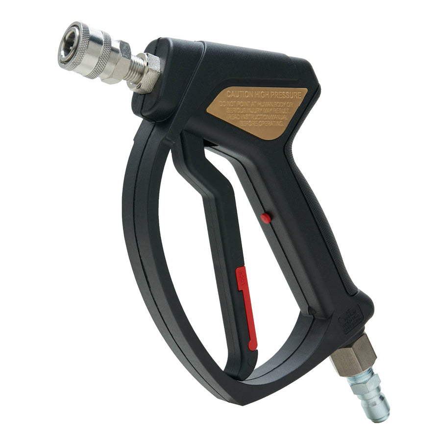 This new look MTM Hydro SGS28 spray gun packs the same exceptional performance you come to expect and enhances that professional look as a compliment to the YumCars liquid line. With an integrated stainless steel live swivel and stainless QC fittings installed, you’re in the driver's seat with this revolutionary cleaning tool. The live swivel allows the hose to spin while under pressure and the Easy Pull trigger provides a relaxed grip preventing hand fatigue on those extended cleaning jobs. The stainless plug and coupler ship installed with Loctite to eliminate leaks and installation issues.