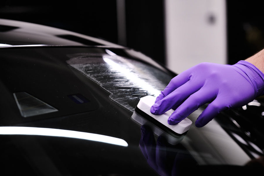 After ensuring the glass is fully cleaned and decontaminated, using our Clay Block and Yum Glass, simply apply a few drops of Glass✚ onto the applicator provided and apply in an up and down left to right action, ensuring even coverage. Let the product haze. We generally start on the windshield, then work our way around the entire car. It is ready to remove once you get back to the windscreen.