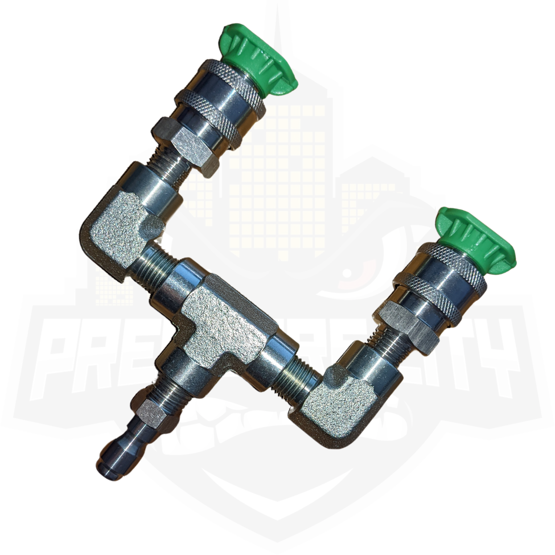 Note: When using this device you will have to decrease your nozzle size to get the same pressure. Example, a machine usually running a 4.0 single nozzle will now need (qty 2) 2.0 nozzles instead.